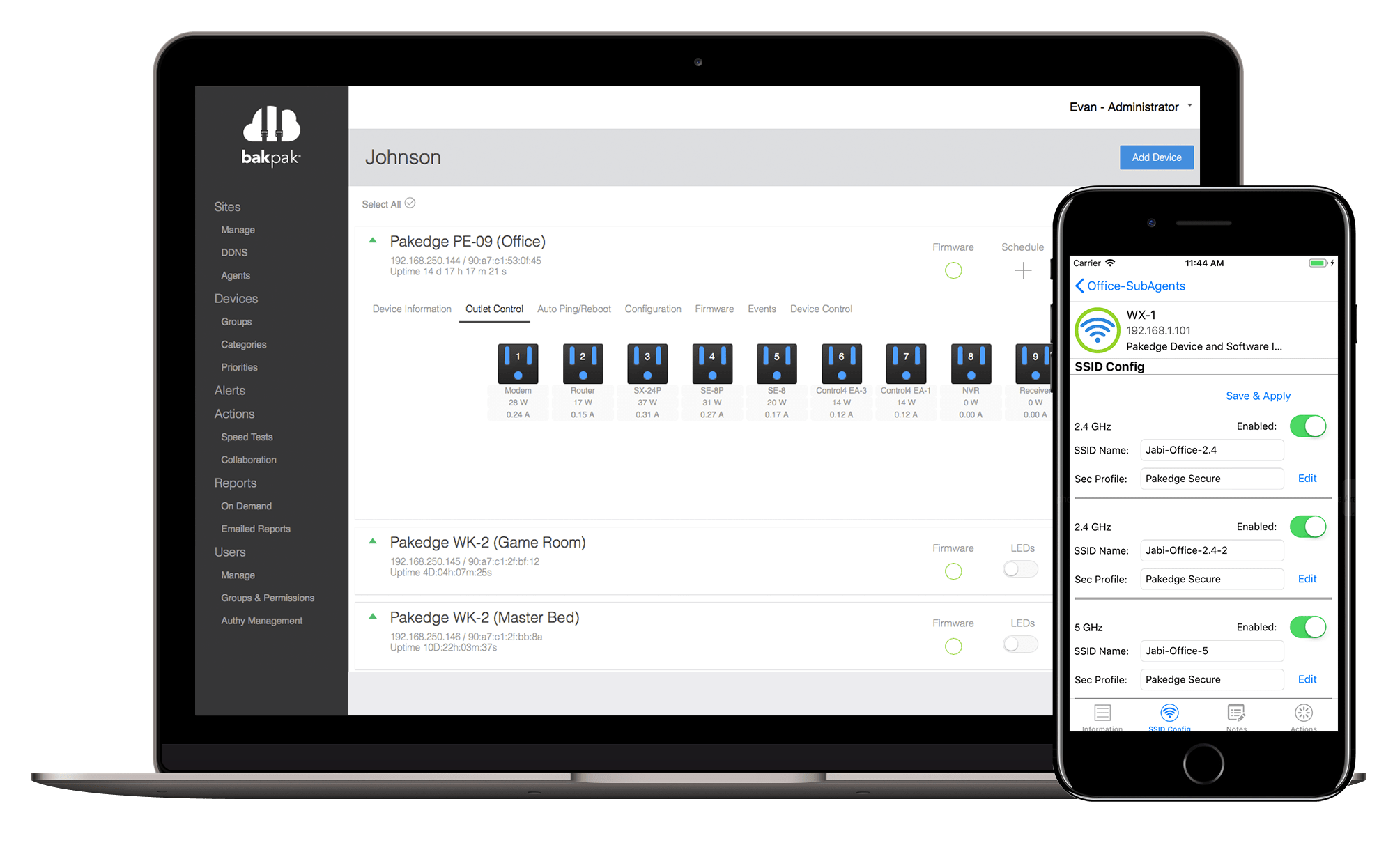 BakPak remote management is now included on all Pakedge access points (WK & WX Series) and PowerPak PDUs.